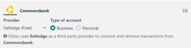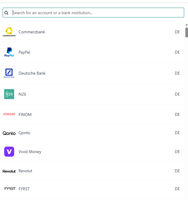 - Während der Auswahl der Bank aus der Liste werden Ihnen Anbieter wir Saltedge oder EnableBanking angeboten. Beide Anbieter sind kostenlos und empfehlenswert. Saltedge ist nach unserer Auffassung eine stabile Wahl.